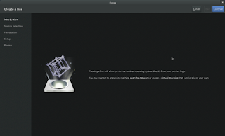 Two of our awesome designers, Jon McCann and Jakub Steiner) started creating design for this UI. We (as in Jon McCann) named it 'Boxes' as its something that deals with..hm.. boxes. At the same time, we (me, Marc-Andre and Christophe) kept working on the foundations for Boxes, mainly in the form of lots of improvements to libvirt, libvirt-glib, libosinfo and spice-gtk.