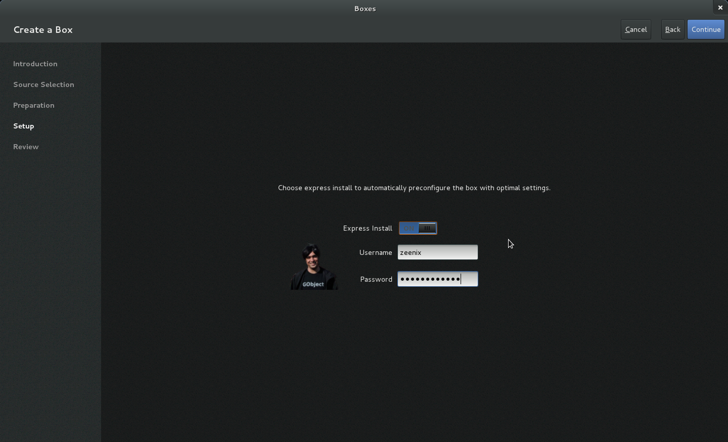After a few days of tiring work on fixing critical issues in Boxes and its dependencies we finally managed to roll-out our first release. You are more than welcome to try it out already and report any issues you find but please keep in mind that at the moment we require the latest (unstable in many cases) releases of our dependencies to be able to make use of their latest features. If you happen to be a jhbuild user, you are in luck as building boxes is as easy as typing `jhbuild build gnome-boxes`.